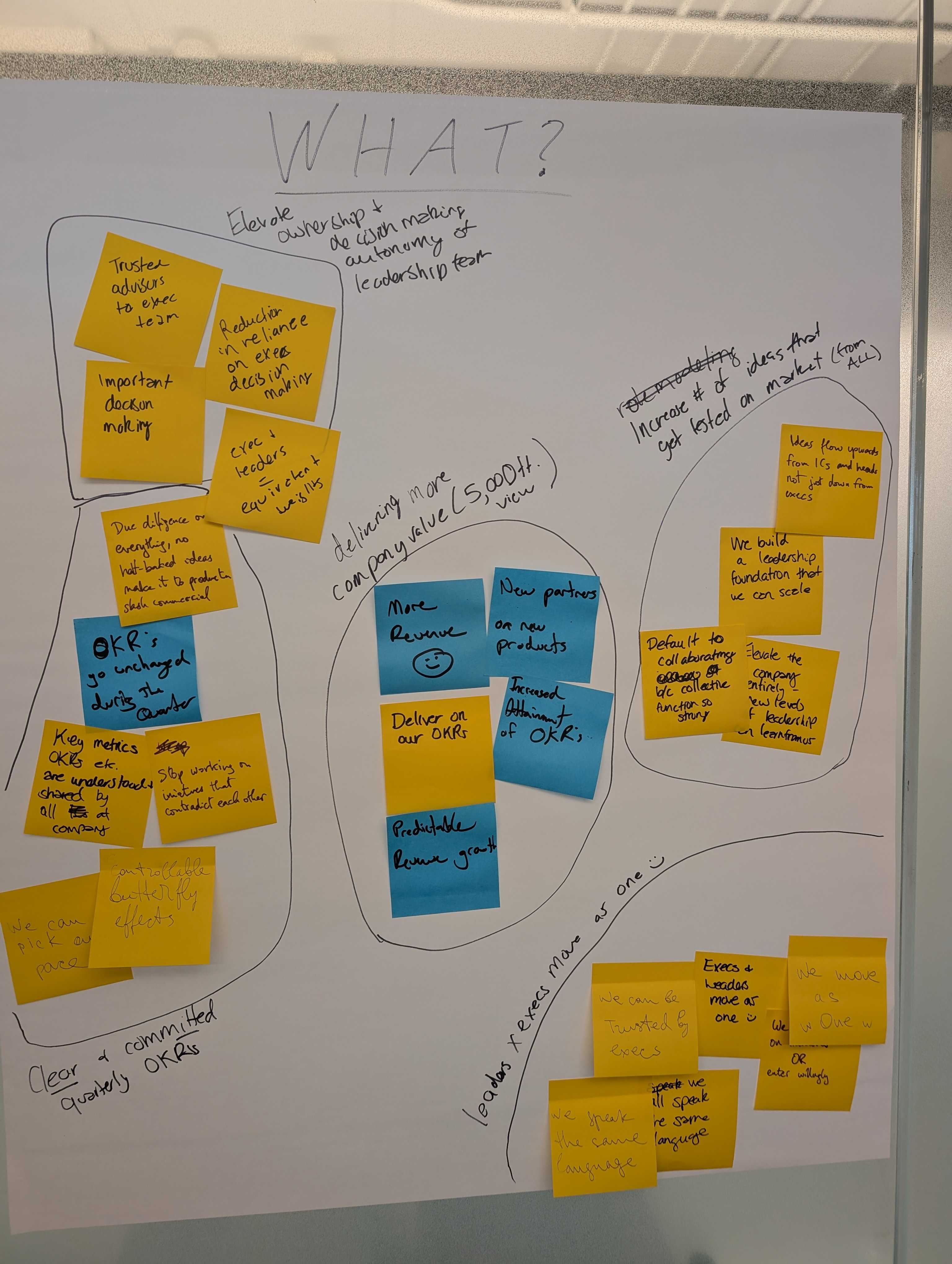 The most critical of these, as one of our post-it notes bluntly put it, was “Not being ICs”. This meant consciously dropping our departmental hats at the door and adopting a company-level perspective. This principle is the bedrock - without it, any process we built would crumble under the weight of siloed thinking.